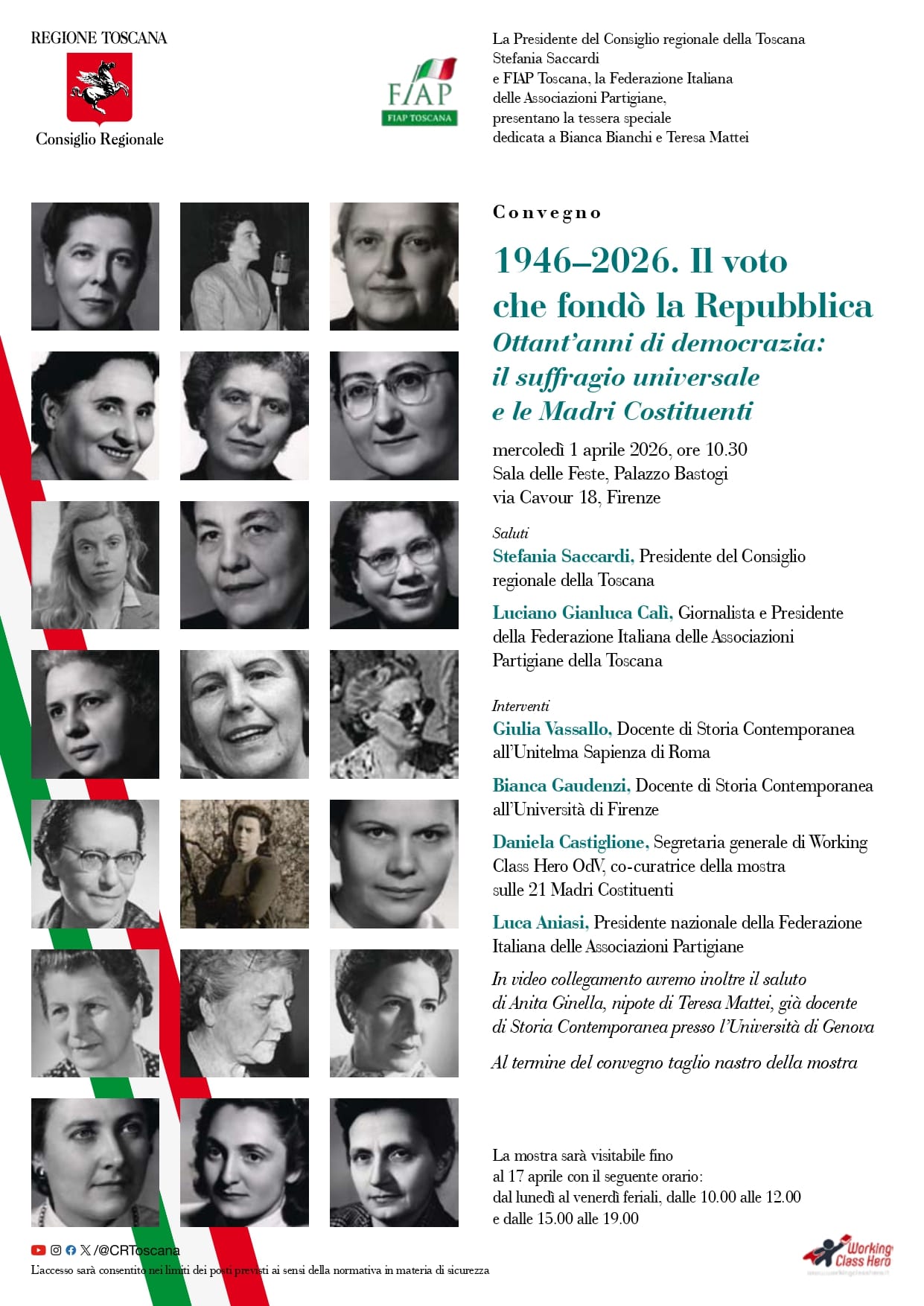 La Presidente del Consiglio regionale della Toscana Stefania Saccardi e FIAP Toscana, la Federazione Italiana delle Associazioni Partigiane, presentano la tessera speciale dedicata a Bianca Bianchi e Teresa Mattei
